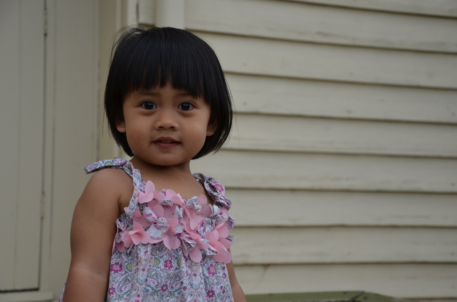 Hari berganti hari, bulan berganti bulan. Dan alih- alih membesarkan seorang anak perempuan perkasa calon preman pasar, anak gadis saya ternyata tumbuh menjadi balita pemalu yang suka bersembunyi di balik kaki emaknya. Dia takut pada orang asing, takut pada hewan apapun (bahkan anak ayam kecil mungil). Saat giliran bermainnya diserobot, dia tidak akan memukul si tukang serobot, tetapi lebih memilih untuk menghindar pergi saja. Kalau mainannya direbut dia hanya akan melongo dan menyingkir dengan wajah takut.